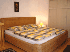 und bequemen Doppelbett, Kleiderschrank, kleiner Sitzecke und einem kleinen,